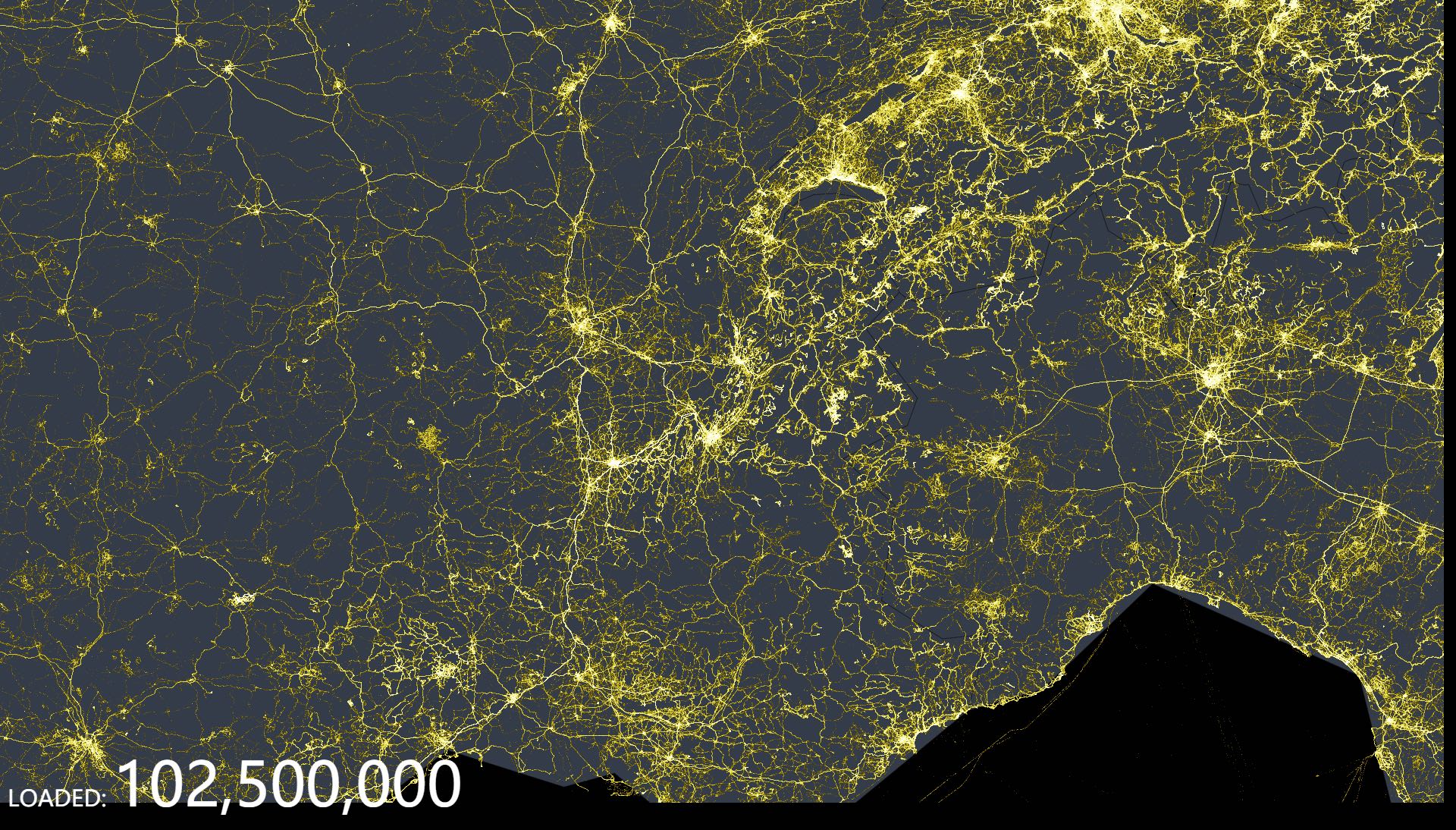 With the help of imcremental rendering technique since v4.0 and optimization of all ascpects, ECharts can display the visualization of tens of millions of data. What's more, interactions like scaling and transforming are fluent all the same.